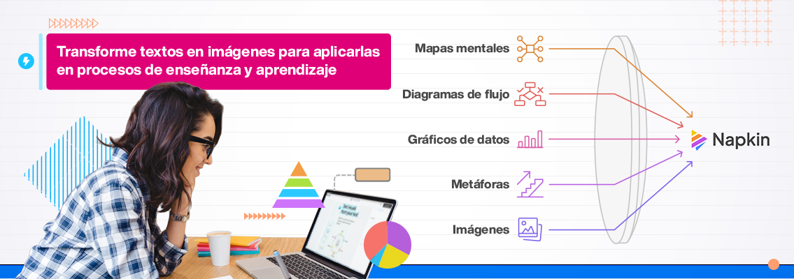 Los gráficos, mapas mentales, diagramas, tablas, ilustraciones, infografías y otros tipos de representación visual son elementos que contribuyen a la asimilación y aprehensión de ideas, mejorando la comprensión y comunicación de conceptos y procesos. Su uso se ha extendido y diversificado con cada innovación tecnológica, por lo que hoy los docentes cuentan con más y mejores herramientas para crearlos. Una de ellas es Napkin IA, plataforma que, soportada en inteligencia artificial, transforma textos escritos en imágenes profesionales de amplia aplicación en los procesos de enseñanza y aprendizaje, especialmente en aquellos que involucran procedimientos de análisis, sistematización de información o relacionamiento de contenidos.